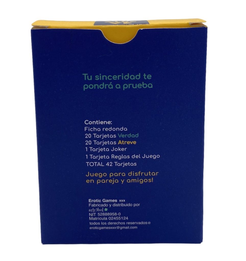 40 tarjetas entre verdades y atreverse, en este juego la sinceridad se pone a prueba o un reto de atrévete esperará al participante. Todo está permitido y solo es obligatorio pasarla bien.
